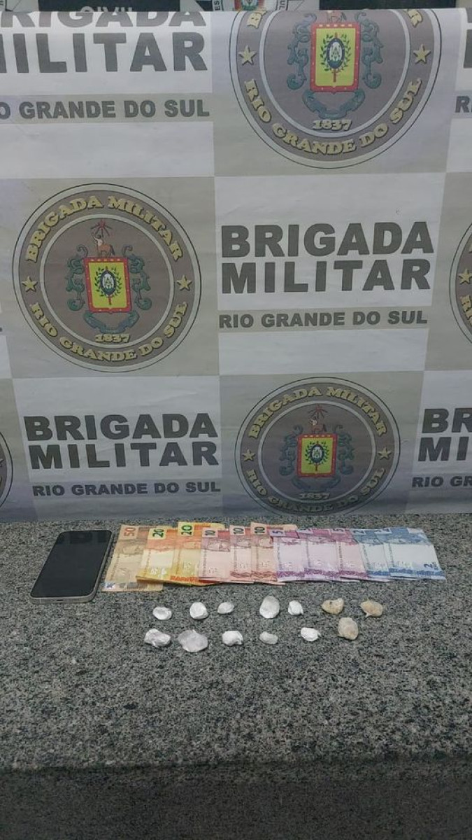 Uma guarnição, após receber informações dos agentes do setor de inteligência que estavam monitorando um jovem sobre o qual recaíam diversas denúncias por tráfico de entorpecentes na área central do município de Salvador do Sul, realizou a abordagem.