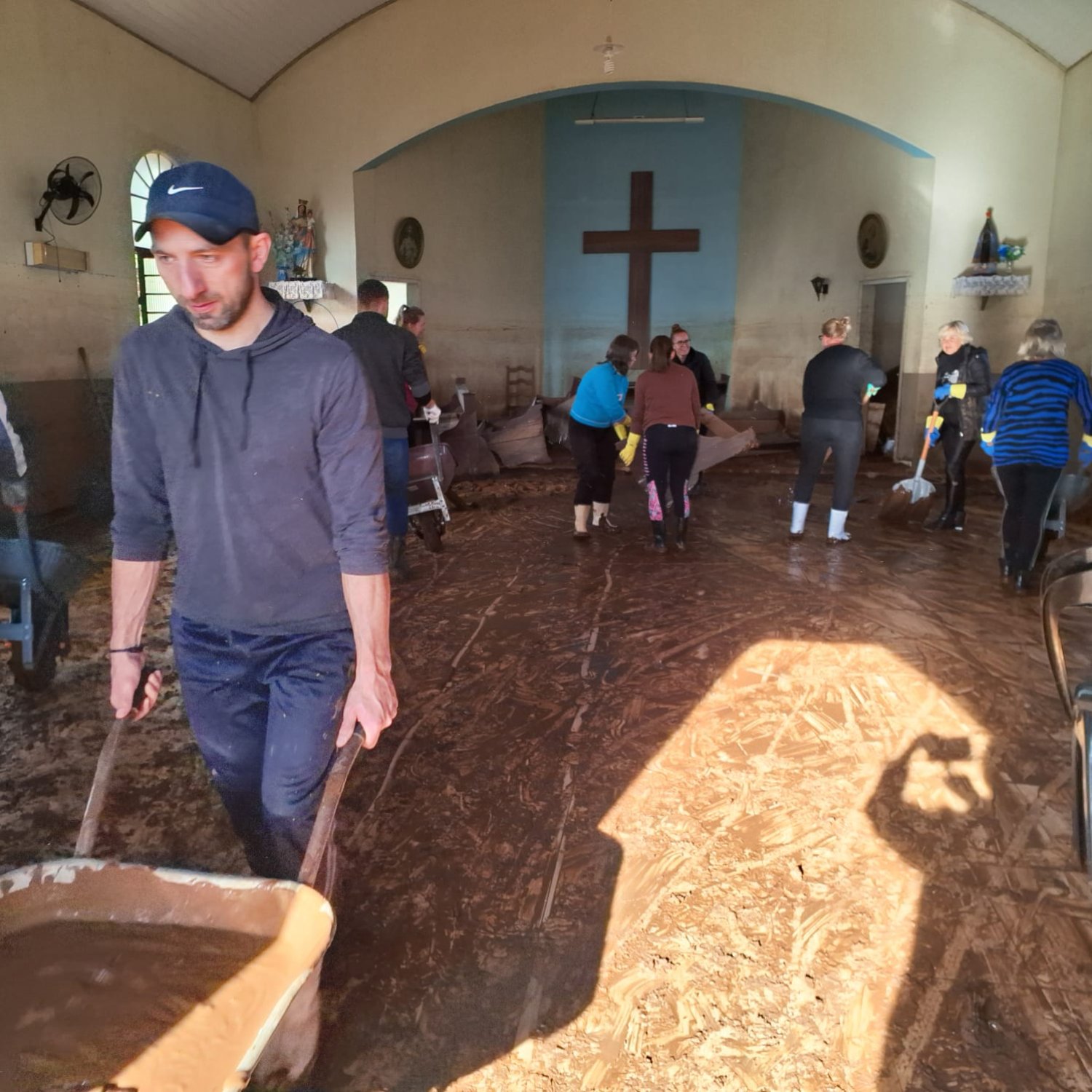 O grupo de voluntários limpou a igreja da comunidade, que acabou não sendo atendida pelos moradores do entorno, que precisaram concentrar as energias na limpeza das próprias residências. "Por lá o rio destruiu