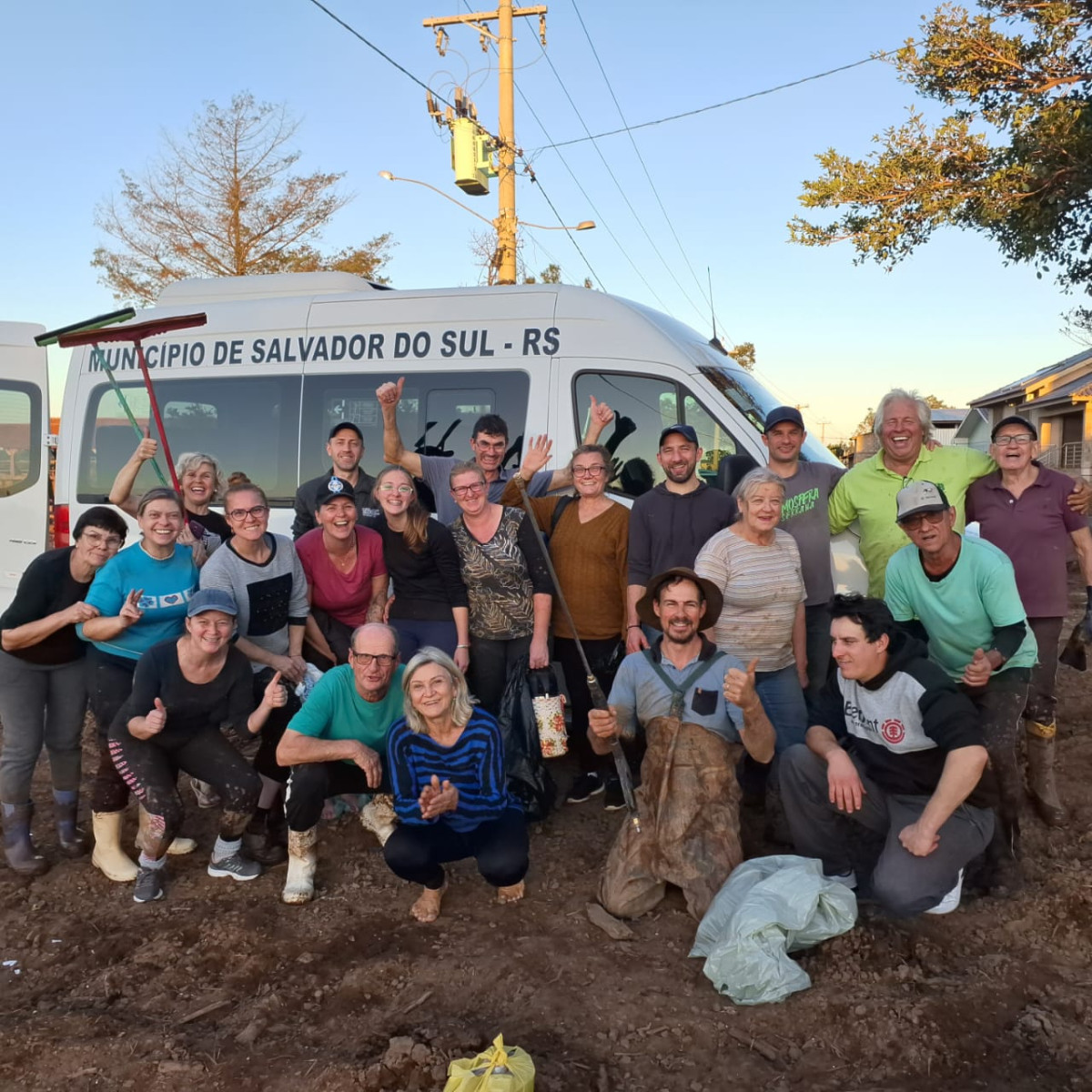 No último final de semana um grupo de moradores de Salvador do Sul e São Pedro da Serra estiveram na Linha Figueira, área rural da cidade de Estrela, para ajudar na limpeza da comunidade atingida pela enchente. O cenário é de destruição, e o desespero dos moradores, que viram seus pertences arrastados pela correnteza e suas vidas colocadas em risco, onde muitos foram resgatados de barco e helicópteros, foram testemunhados pelos voluntários de Salvador do Sul e São Pedro da Serra. No município de Estrela cerca de 10 mil pessoas foram atingidas.