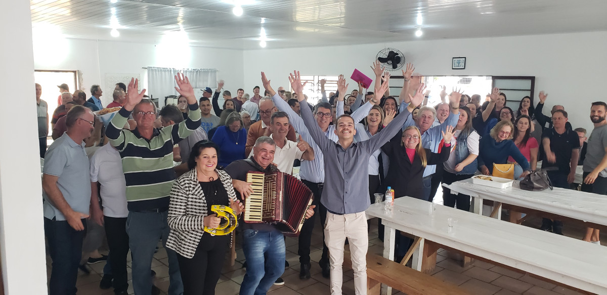 Foi no bairro Vila Nova, na associação dos moradores, que o MDB oficializou Laerce e Henrique à prefeitura de Salvador do Sul.