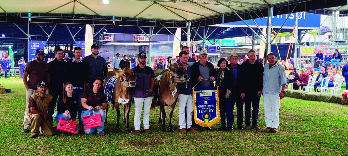 Em um feito histórico para a raça Jersey, a vaca NANDA CELEBRITY AVISTOSO se destacou como a Suprema Campeã nas duas principais feiras agropecuárias do Brasil em 2024: a AGROLEITE, em Castro-PR, e a EXPOINTER, em Esteio-RS. Esta façanha coloca NANDA como a melhor representante de sua raça entre todas as raças leiteiras presentes, um feito que celebra a excelência genética e o trabalho árduo da equipe da Agropecuária Fortaleza, de Carlos Jacob Wallauer, de Salvador do Sul - RS.