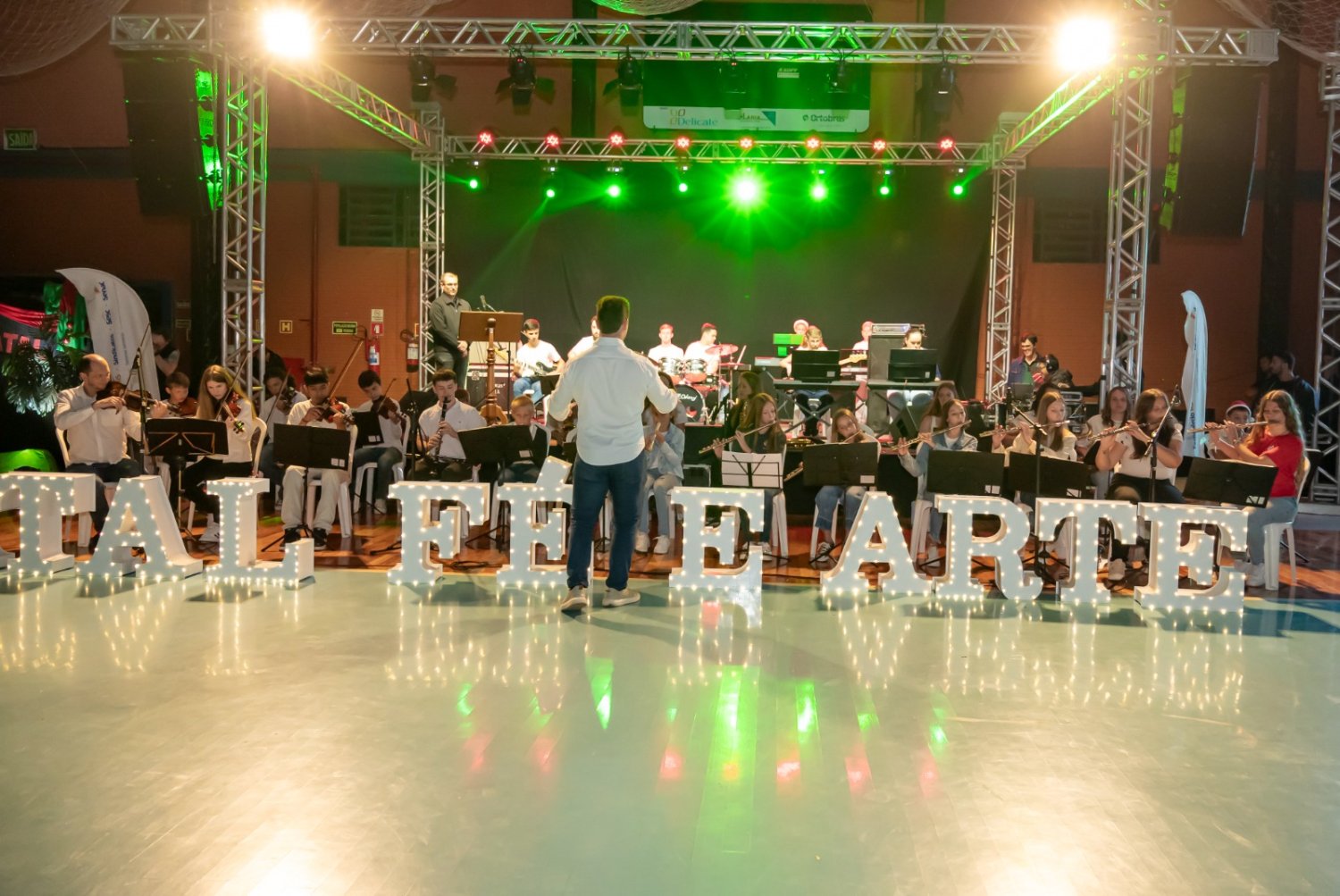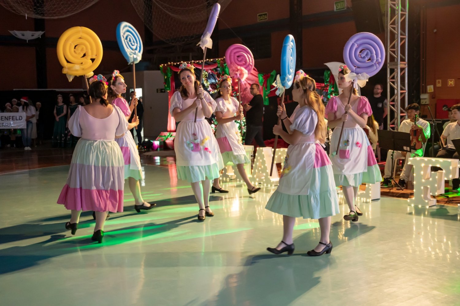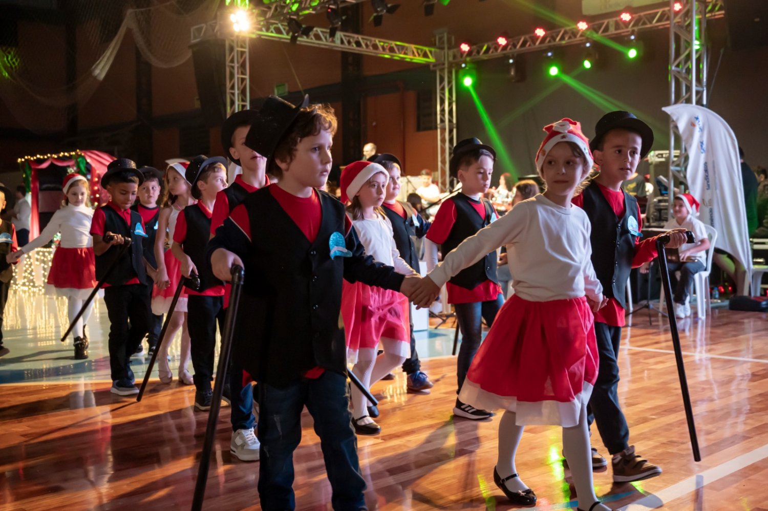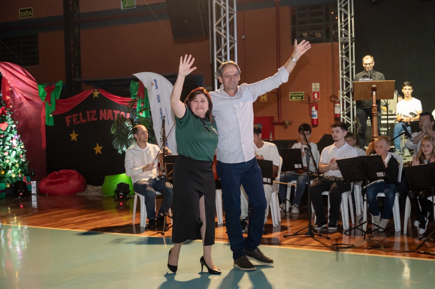 Nem a instabilidade do tempo atrapalhou a realização da sexta edição do Natal Fé e Arte, em São Pedro da Serra. Luzes, sorrisos e lágrimas de emoção tomaram o ginásio municipal com as apresentações das escolas, entidades e comunidade são-pedrense. Crianças e adultos vibraram com o desfile de bailarinas, artistas, banda, personagens e o Papai Noel. Aos poucos, o espetáculo foi ganhando corpo. Centenas de pessoas assumiram seus lugares, em alas intercaladas com muitos símbolos natalinos.