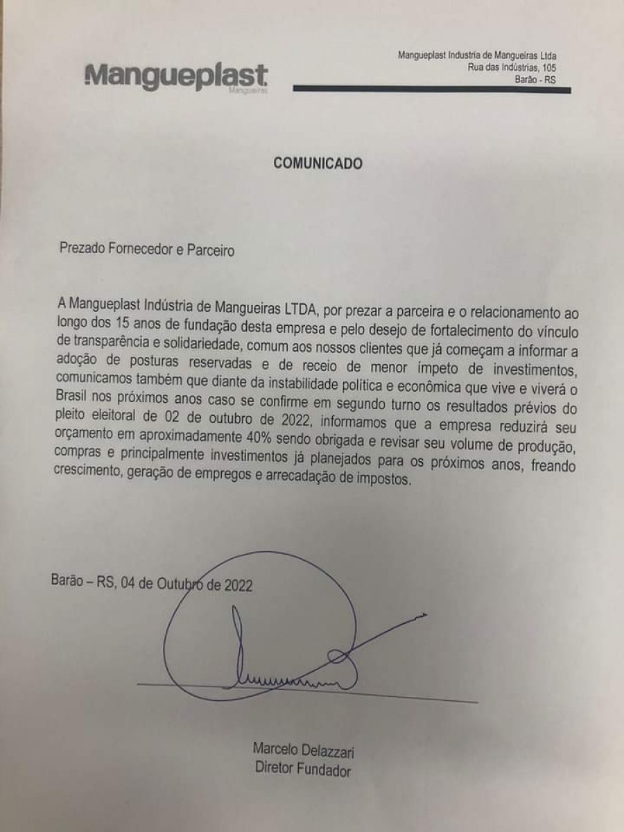 Empresas ameaçam com demissões caso Lula seja eleito presidente