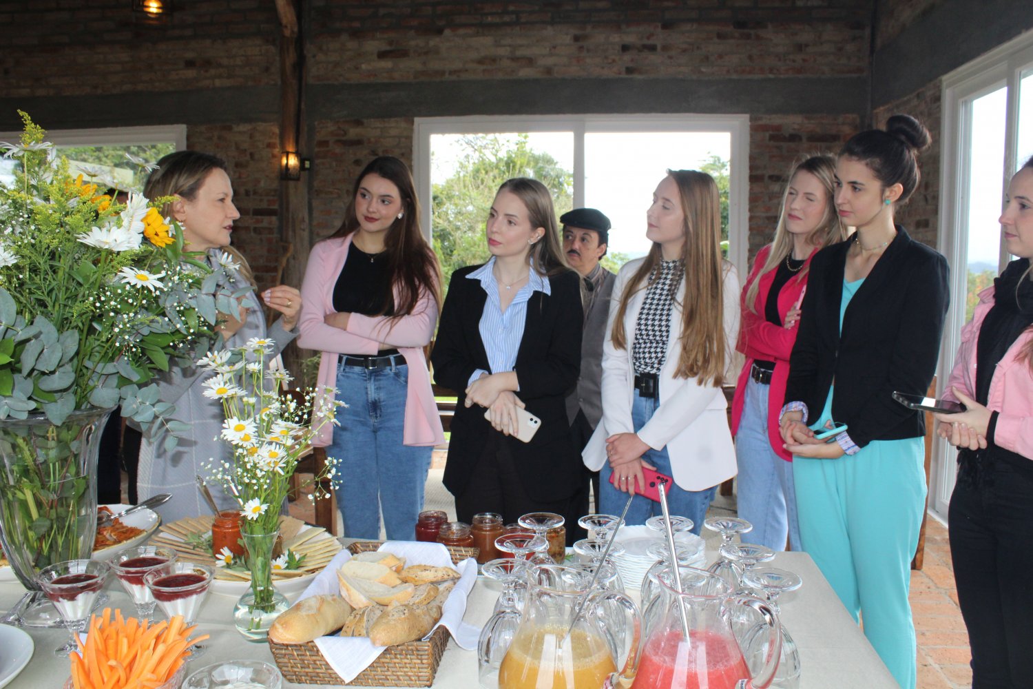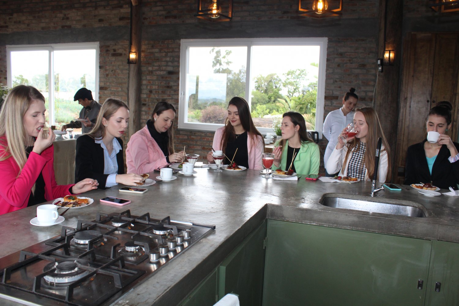 Para as candidatas, foi oferecido um café da manhã especial onde puderam apreciar as delícias produzidas no local, como cheesecake de frutas vermelhas, caponatas, geléias, tudo produzido com muito sabor e carinho. Ainda, conheceram as dependências da Casa Marchezzi, como o labirinto e também o relógio chinês de chás. O prefeito Marco Eckert também esteve no local e parabenizou a família Marchezzi pelo trabalho. ‘Salvador do Sul tem orgulho de contar com produtos de tanta qualidade e sabor. Já é um grande sucesso’, destacou.