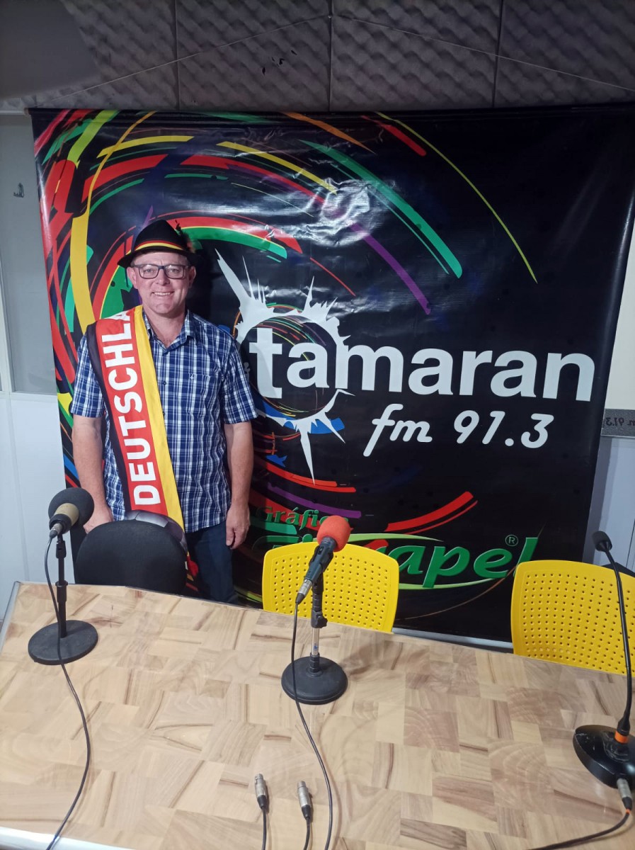 Desde abril de 2022 que o locutor Edson Weschenfelder apresenta na rádio Tamaran, 91.3 FM, o programa Deutsche Musik Meh Wie Schön. Das 11 às 13 horas, o locutor promove entretenimento, músicas típicas alemãs e conversa com seus ouvintes, que destacam o quanto o programa é relevante para celebração da cultura germânica na região. Todos os sábados, Edson ainda apresenta uma interação muito interessante: apresenta uma palavra nova ao vocabulário alemã dos moradores de toda região. ‘São palavras que geralmente as pessoas por aqui não conhecem a tradução em alemão, como faixa de pedestre, por exemplo, que é Zebrastreifen, ou seja, se fizer uma associação de palavras é possível ampliar o vocabulário’, explicou.