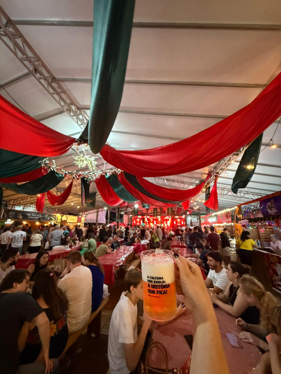 O espaço elevado, com vista privilegiada para o palco principal, ofereceu pratos e bebidas da gastronomia regional em um ambiente acolhedor.