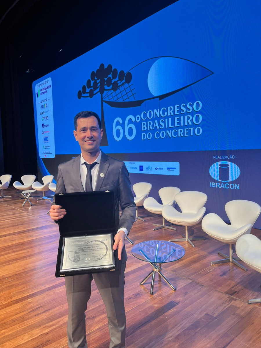 Engenheiro Felipe Schneider de Lima é premiado pelo IBRACON com pesquisa que aprimora desempenho de lajes pré-fabricadas no Brasil