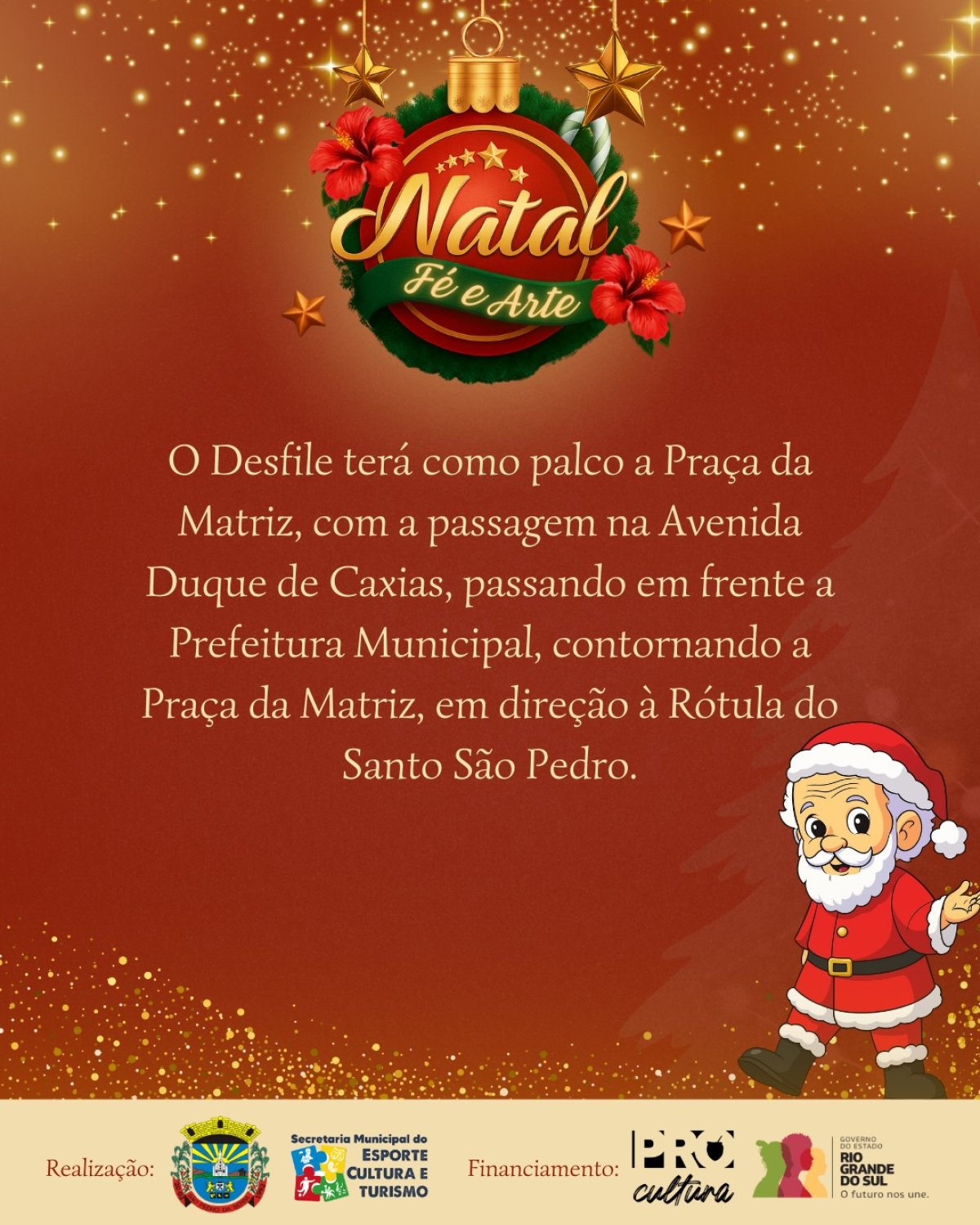 O clima natalino toma conta de São Pedro da Serra neste sábado, 6 de dezembro, com a realização do 7º Desfile Natalino - Natal Fé e Arte: ‘O Florescer em Cor, Tradição e Magia’. O evento inicia às 20h, enchendo as ruas do município com luz, música e o encantamento característico desta época do ano.