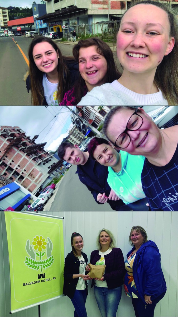 MARIA EDUARDA: O projeto ‘APAExone-se por doar’ foi a realização de um pedágio beneficente para a APAE de Salvador do Sul. O dinheiro arrecadado foi de R$ 2.374,70 que foi destinado para a entidade e poderá ser utilizado em prol de todas as pessoas atendidas na APAE. É um projeto que me fez pensar no quão importantes e especiais são aquelas pessoas que precisam de uma atenção diferenciada e o quanto elas nos têm a ensinar com suas particularidades.