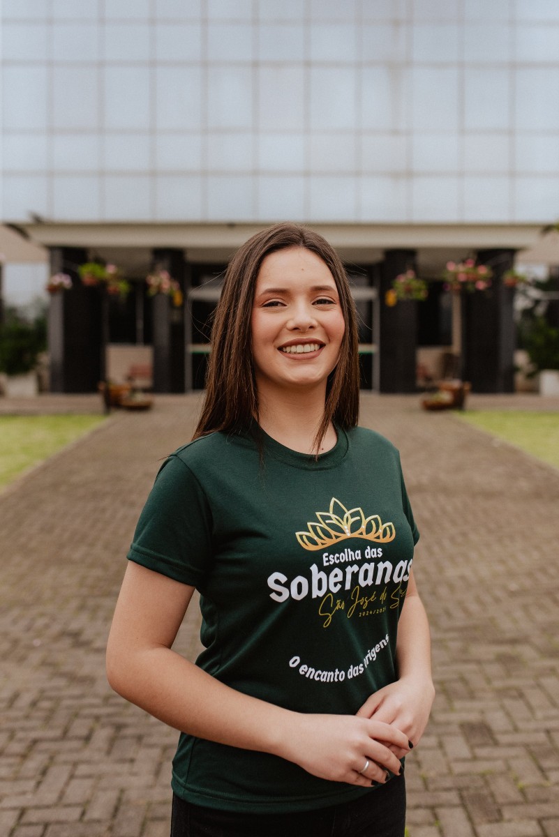 ÉRICA CRISTINA FLORES DAHMER: Gostaria de ser soberana de São José do Sul para poder representar a cidade onde cresci e vivo, com muita dedicação, humildade, carisma e simpatia. Mostrar a essência do povo São Josense, que é a simplicidade, gentileza e hospitalidade. E ter a oportunidade de levar a nossa cultura além e mostrar o quão linda é.