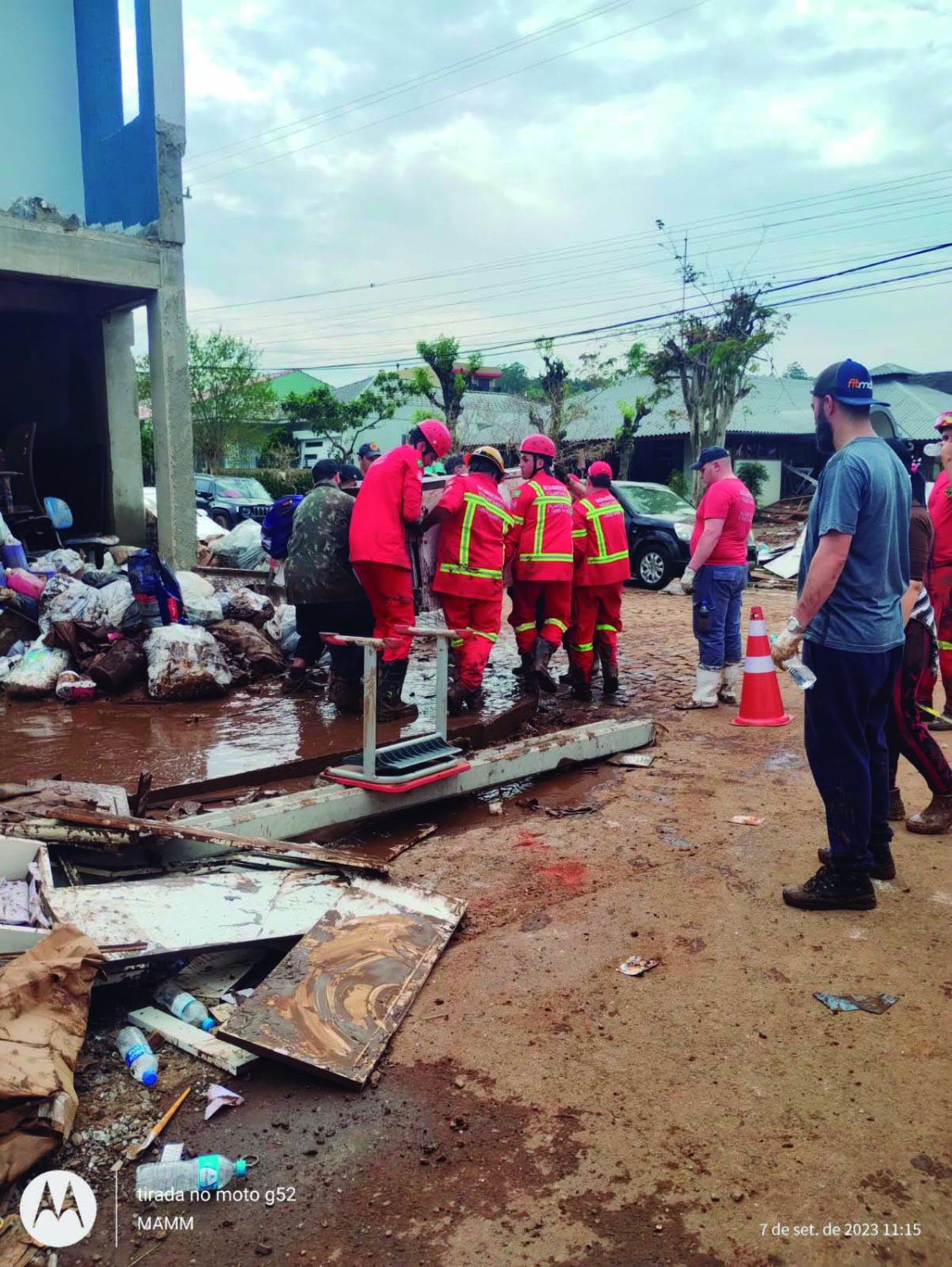 ‘Fomos na quinta, em 13 bombeiros daqui e nos juntamos a mais uns 140 vindos de outras corporações voluntárias, filiadas a Voluntersul, que foram divididos em suas frentes. Nós juntamente com os voluntários de Carlos Barbosa e Vale Real, trabalhamos em Roca Sales, onde a primeira prioridade era o hospital e postos de saúde, bem como uma escola’, explicou Marco, de Salvador do Sul. Conforme ele, ainda estão definindo nova data para atuar nos municípios.